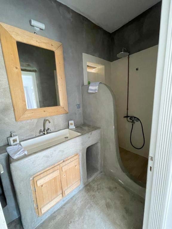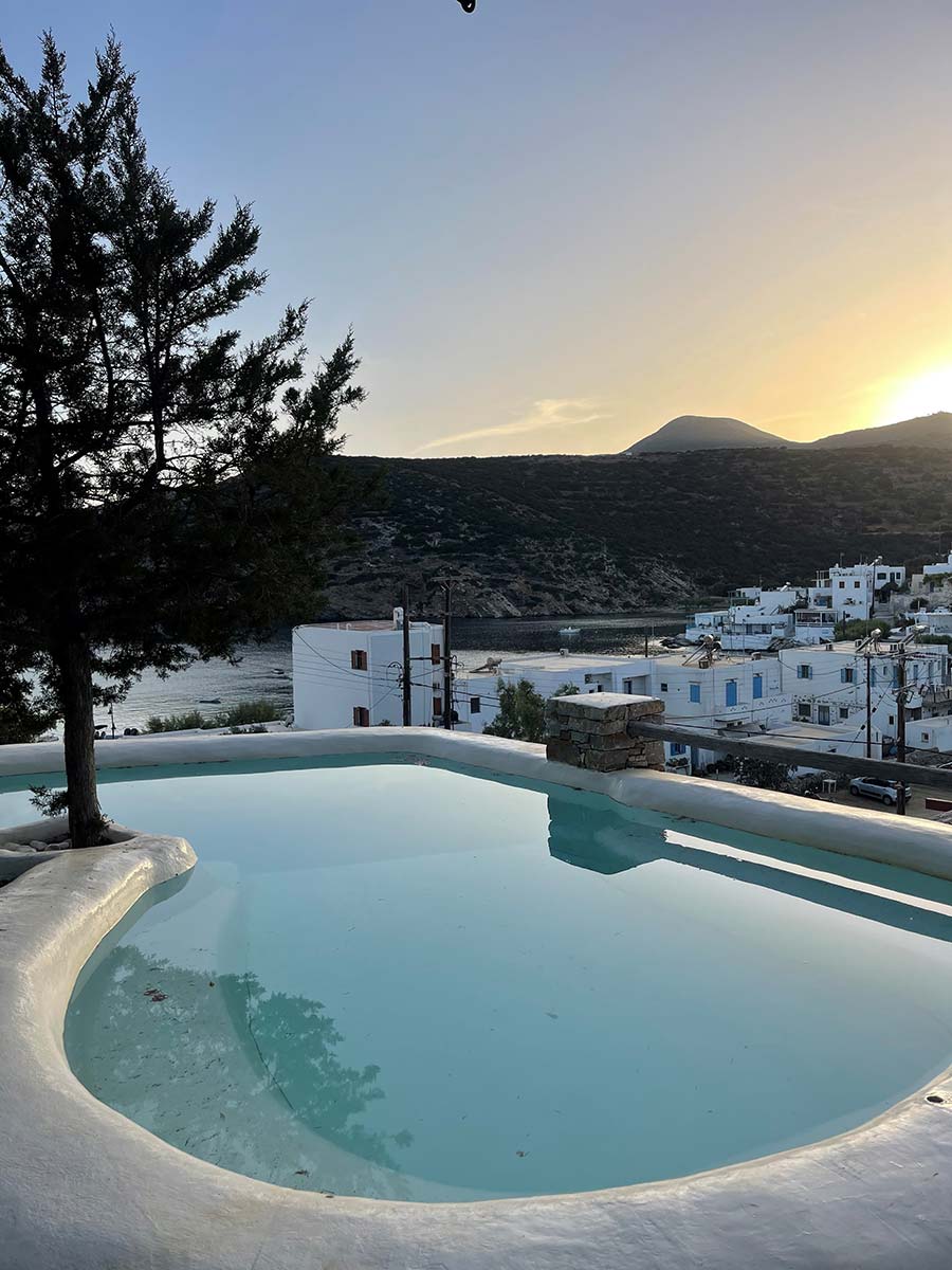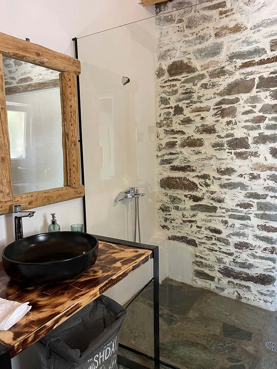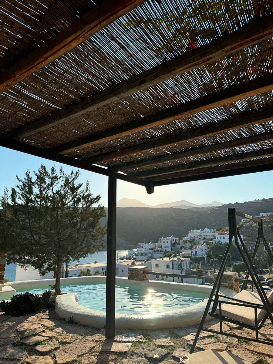 Επιπλέον διαθέτει αυλή με ιδιωτική πισίνα και μαγευτική θέα στη θάλασσα και στον οικισμό του Φάρου.