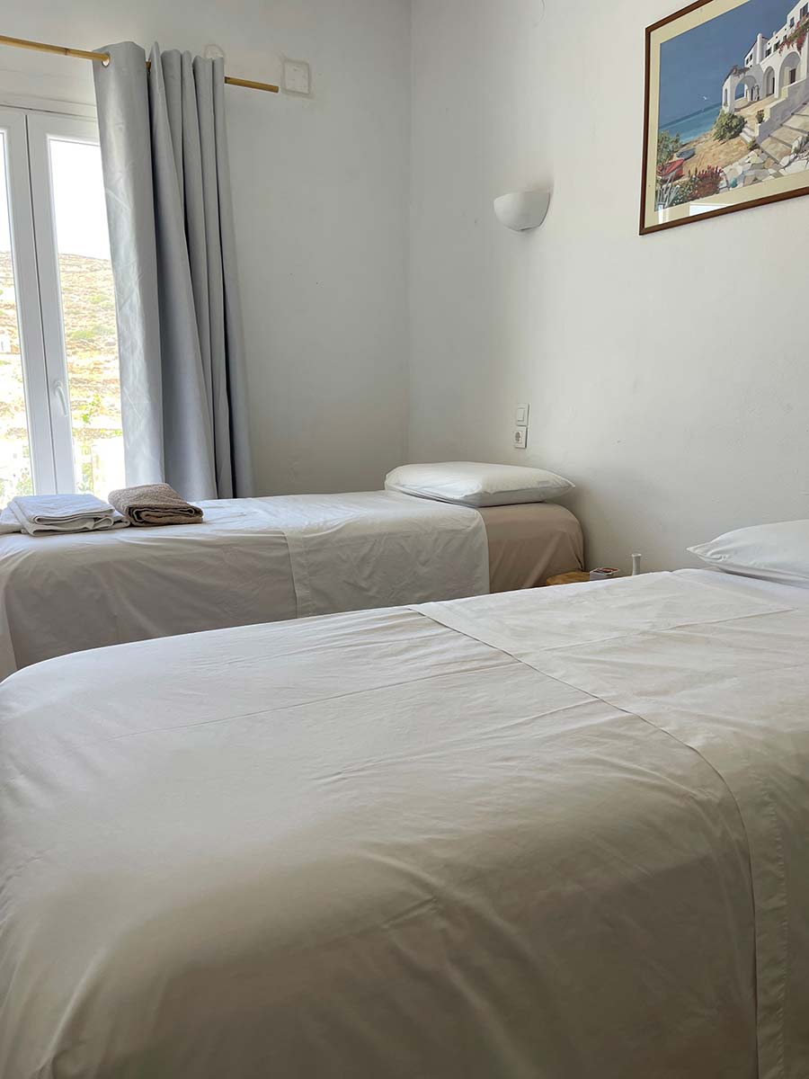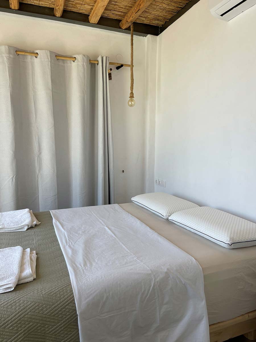 Δίχωρο διαμέρισμα με δύο υπνοδωμάτια, το ένα με διπλό κρεβάτι και μπάνιο και το δεύτερο με διπλό κρεβάτι. Βρίσκεται σε όροφο και η πρόσβαση γίνεται με σκάλες. Διαθέτει εξοπλισμένη κουζίνα και δεύτερο μπάνιο.