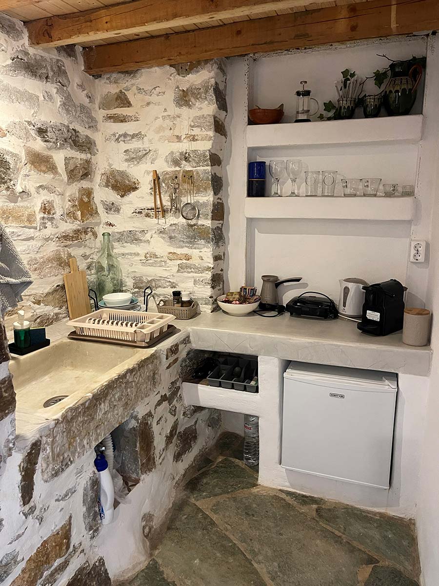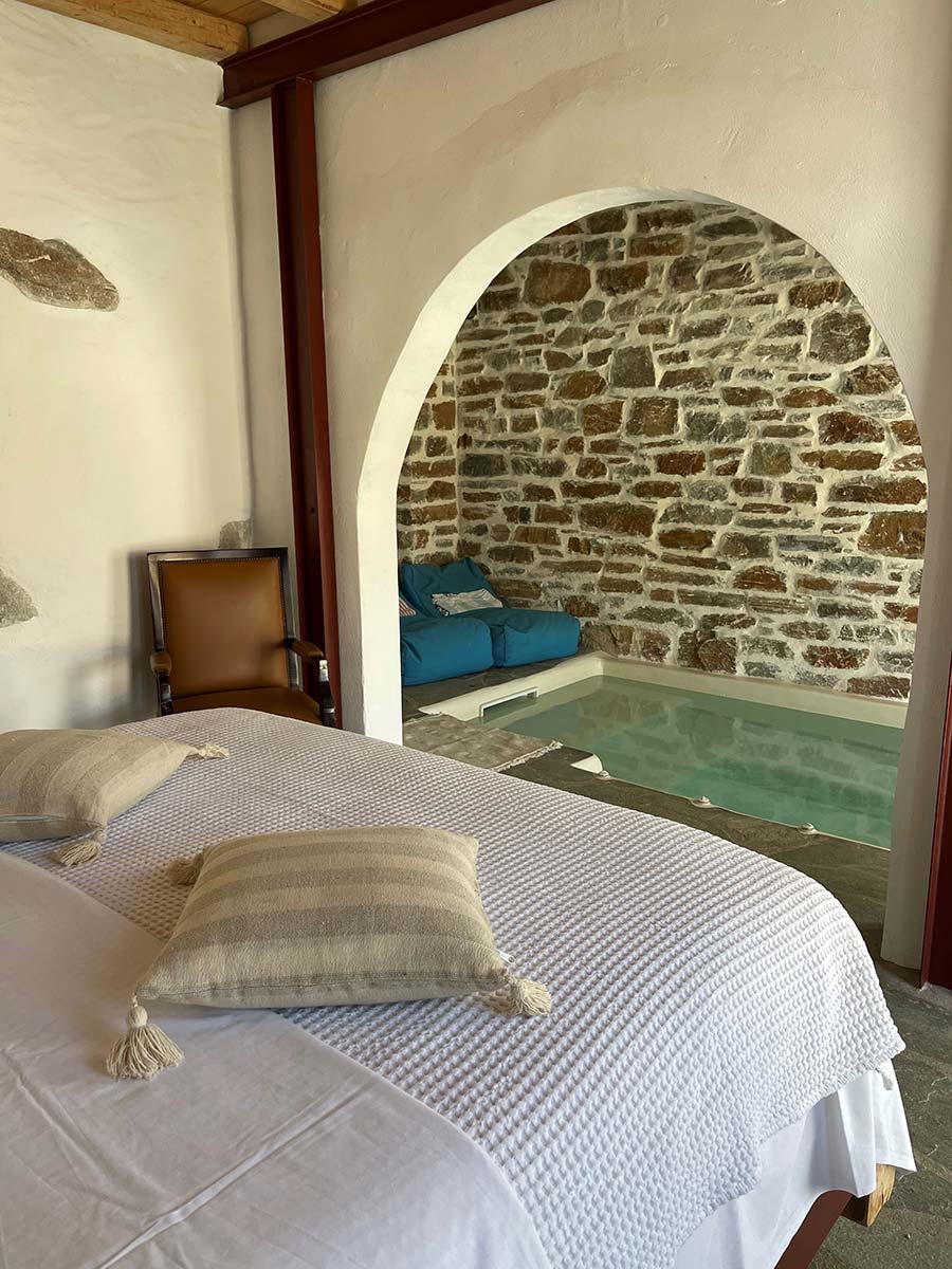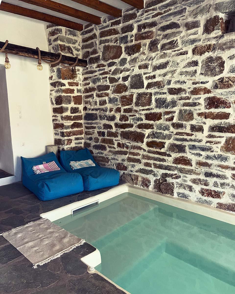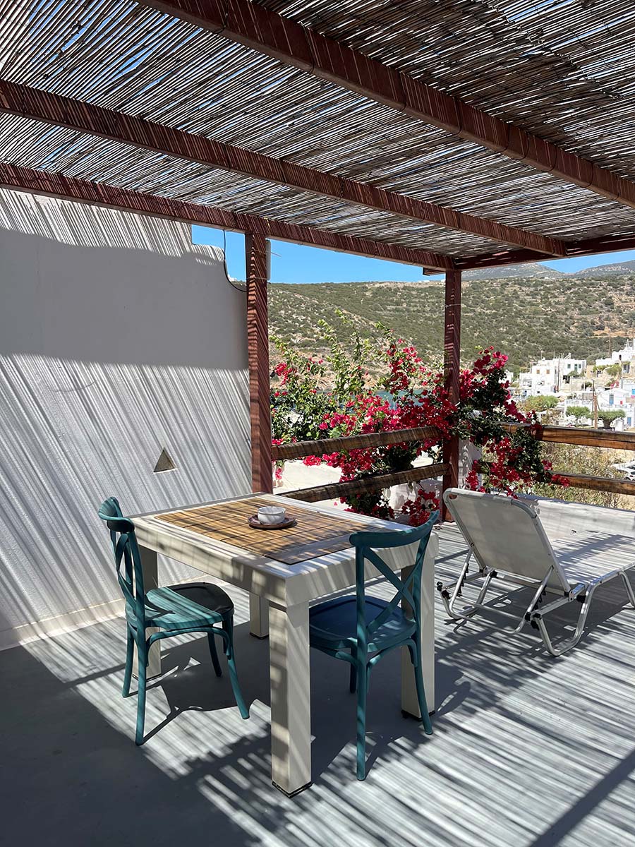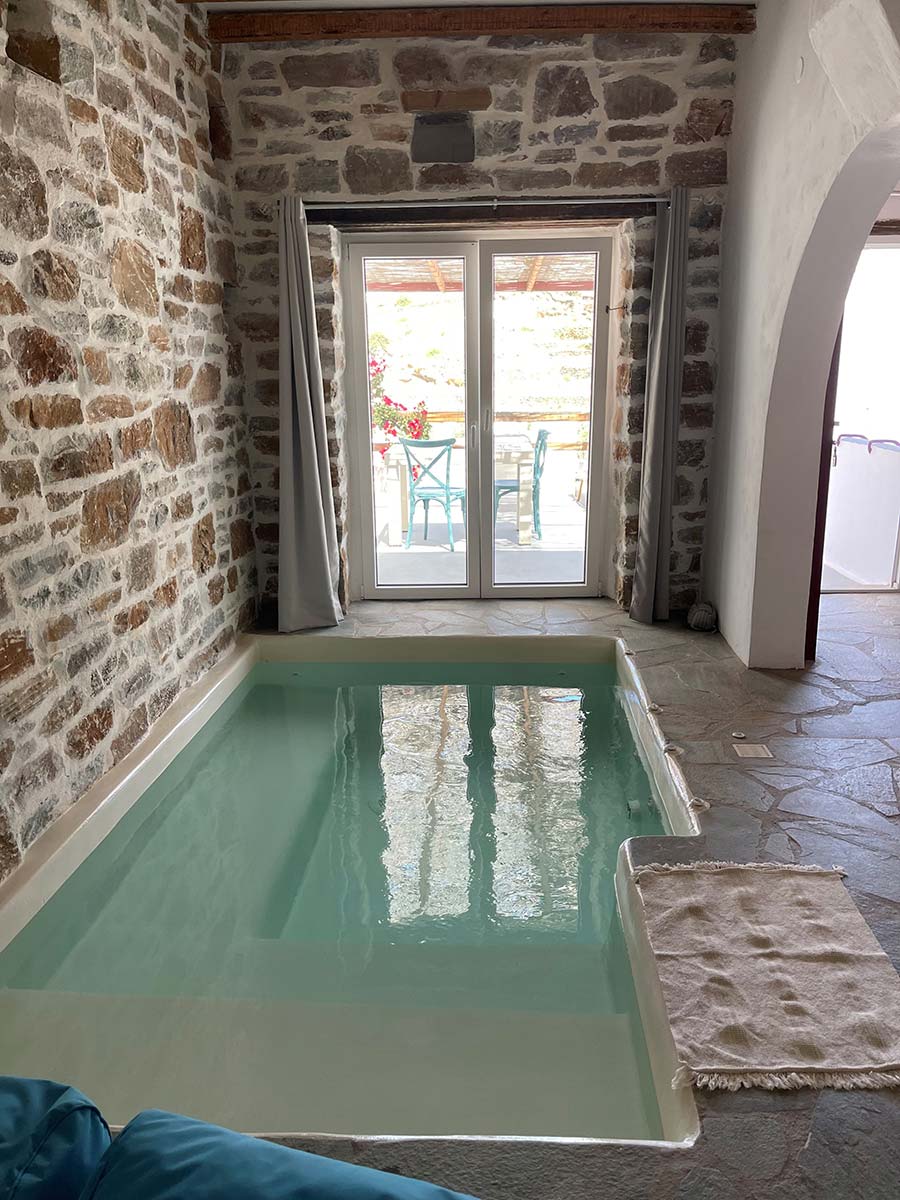 Δίχωρο διαμέρισμα με ένα υπνοδωμάτιο και θερμαινόμενη πισίνα-υδρομασάζ. Βρίσκεται σε όροφο και η πρόσβαση γίνεται με σκάλες. Έχει μία μικρή εξοπλισμένη κουζίνα και μεγάλο μπαλκόνι με υπέροχη θέα στη θάλασσα και στον οικισμό του Φάρου.