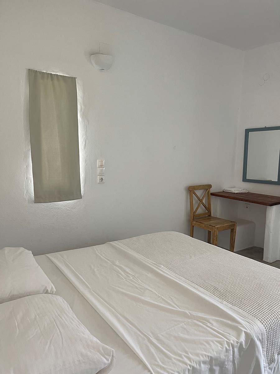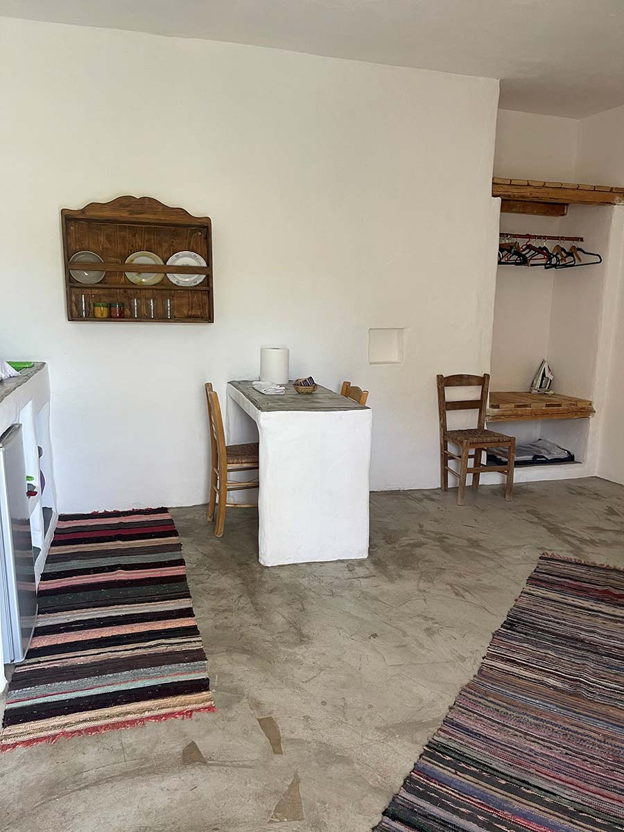 Δίχωρο διαμέρισμα με ένα υπνοδωμάτιο με διπλό κρεβάτι στο οποίο βρίσκεται και το μπάνιο. Στο χώρο της κουζίνας υπάρχει καναπές-κρεβάτι (0,80x2,00). Βρίσκεται σε όροφο και η πρόσβαση γίνεται με σκάλες. Διαθέτει εξοπλισμένη κουζίνα και τραπέζι φαγητού.