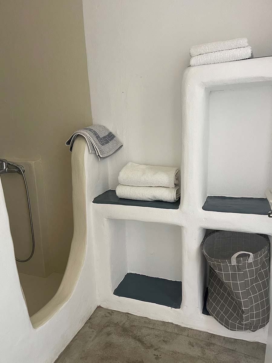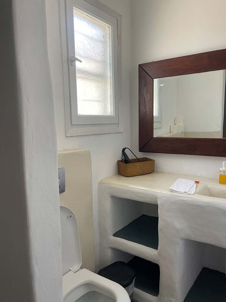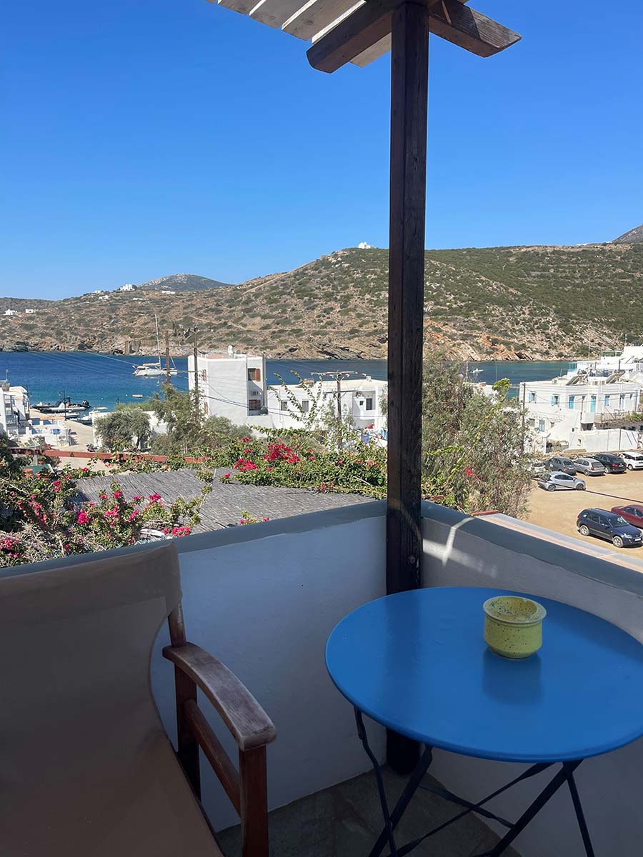 Επιπλέον διαθέτει μπαλκόνι στην κρεβατοκάμαρα με θέα στη θάλασσα και στον οικισμό του Φάρου.